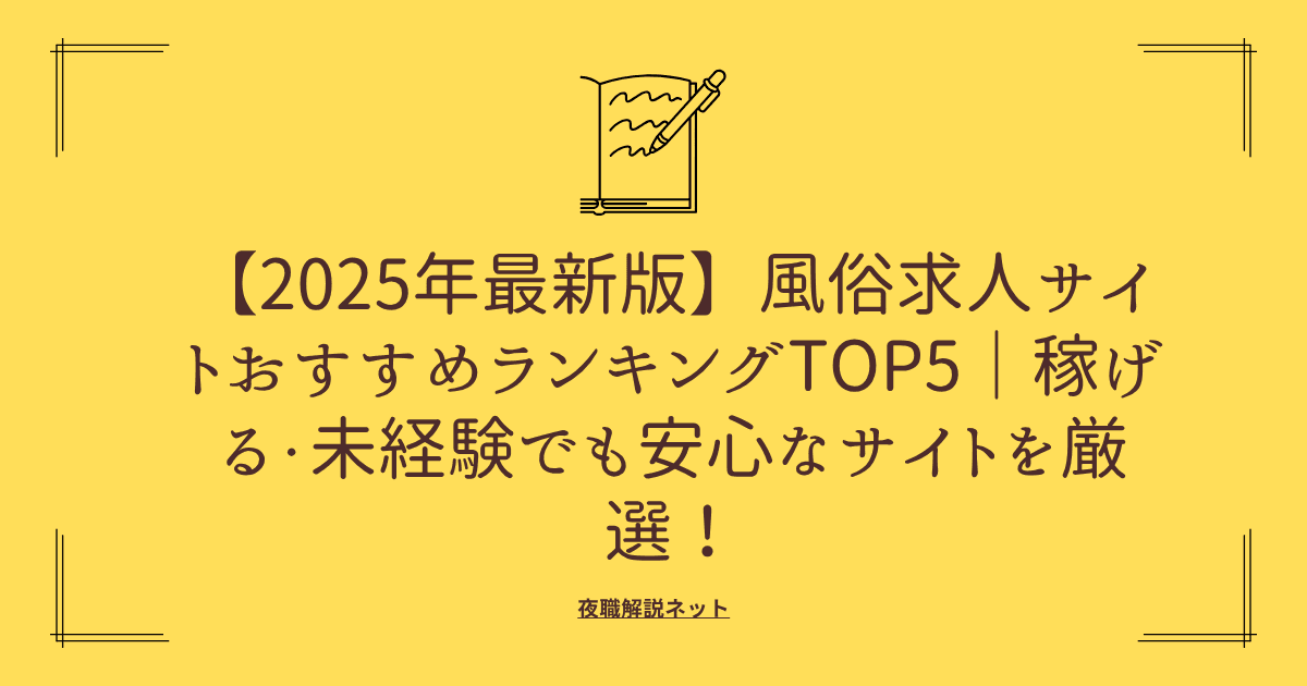「とにかく安心して始めたい!」そんな方にこそチェックしてほしい、2025年最新版のおすすめ風俗求人サイトランキングTOP5です!